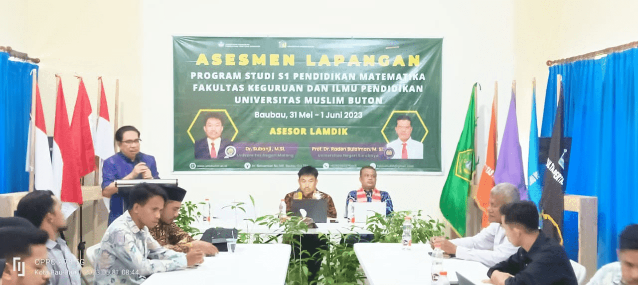 UMU Online-Universitas Muslim Buton, laksanakan Assesment Lapangan Akreditasi Program Studi Pendidikan Matematika FKIP Universitas Muslim Buton pada tanggal 31 Mei-01 Juni 2023 di Kampus Universitas Muslim Buton Jalan Betoambari nomor 146 Bonebone, Batupoaro Kota BauBau.