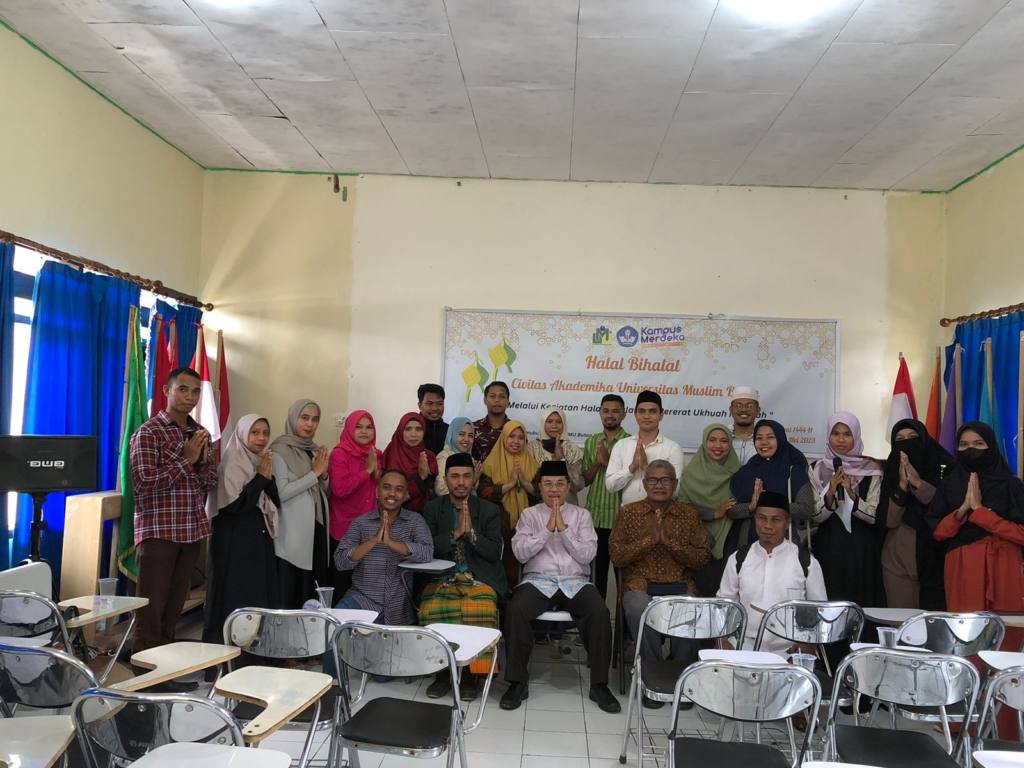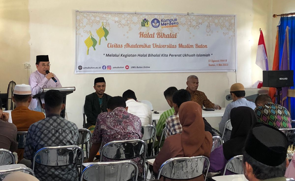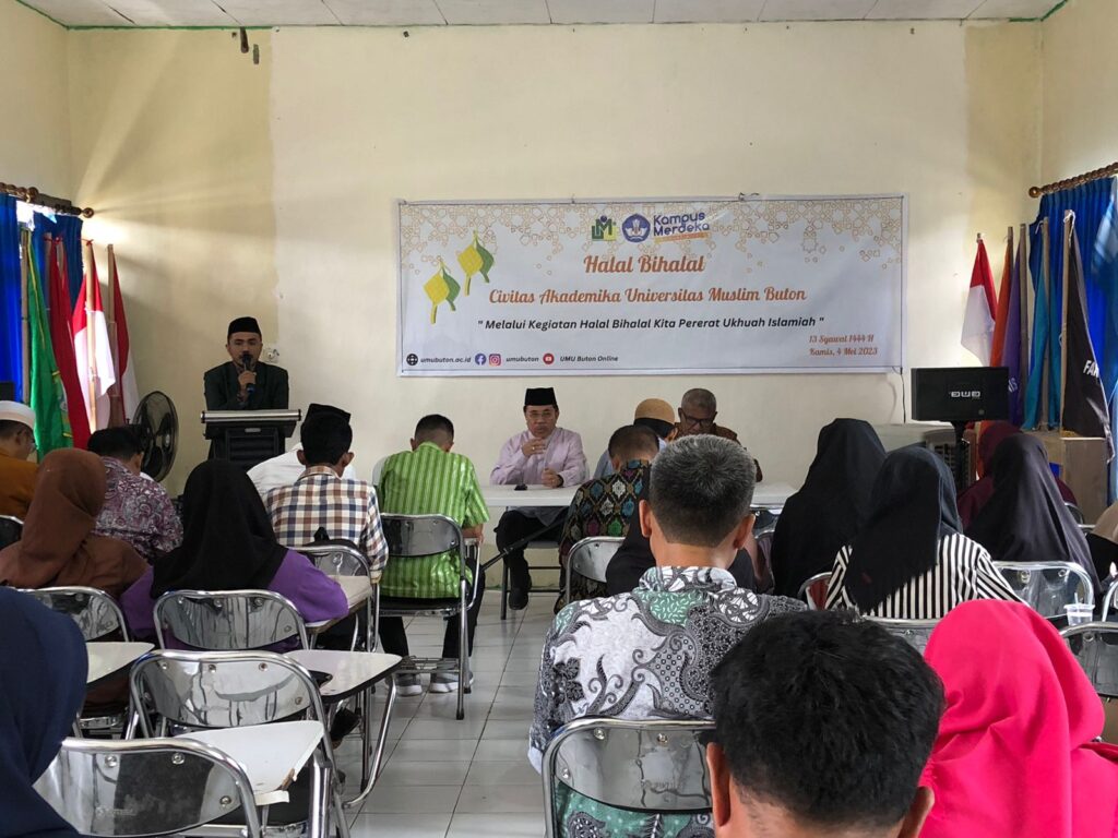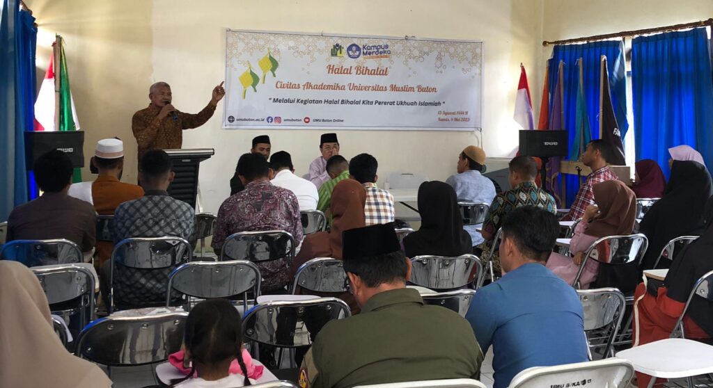 UMU Online-(4/4/23) Universitas Muslim Buton (UMU Buton) sebagai salah satu perguruan tinggi terbesar di Wilayah Kepulauan Buton, dalam usianya yang relativ mudah memiliki tradisi yang kuat dalam menjaga tali silaturahmi dan kebersamaan di dalam lingkungan internal. Sebagai rangkaian memperingati Hari Raya Idul Fitri 1 Syawal 1444H kali ini, UMU Buton mengadakan acara Halal Bihalal yang dihadiri civitas akademika Universitas Muslim Buton. Acara ini dilaksanakan bertepatan dengan pelaksanaan kelas inspirasi UMU Buton pada setiap hari Kamis dengan mengusung tema “Melalui kegiatan Halal Bihalal Kita Pererat Ukhuah Islamiyah” menjadi wadah untuk mempererat tali silaturahmi dan membangun hubungan yang lebih baik.